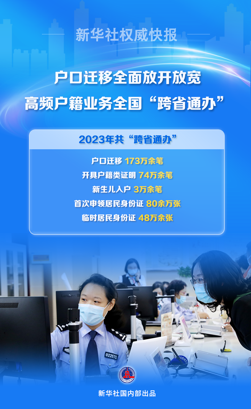 2023年,公安部组织全面实施户口迁移、开具户籍类证明等高频户政业务“跨省通办”。截至目前,全国范围已实现首次申领居民身份证、申领临时居民身份证及户口迁移和开具户籍类证明“跨省通办”。