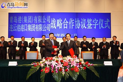 青岛新闻网4月3日讯 4月1日,青岛港(集团)有限公司与连云港港口集团有限公司在青岛港国际会议中心隆重举行战略合作协议签字仪式,这是双方开展战略合作实现港口共赢发展的必然选择。此次签约,双方重在集装箱发展领域寻求更大合作共赢空间。青岛市副市长胡绍军,连云港市市长徐一平参加签约仪式。