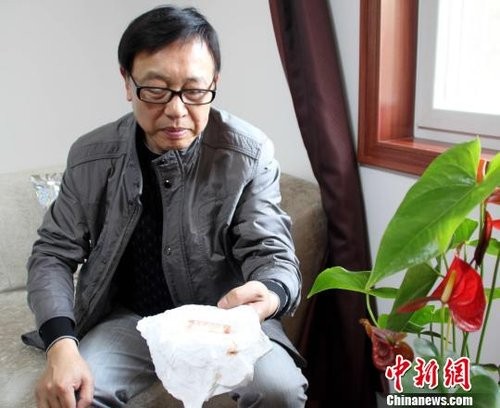 张华向记者出示吐出的针筒(刘良伟 摄)