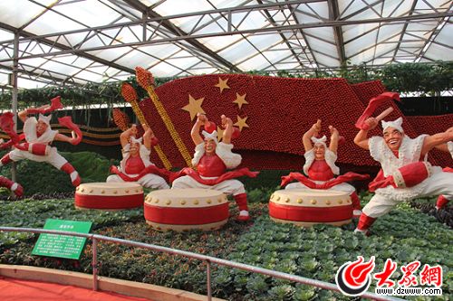 除了精美的果蔬,神奇的科技,令人流连忘返的意境,还有用蔬菜、果实、种子、干果等组合而成的310多个蔬菜艺术景观,让游客不仅感叹科技的神奇,“只有想不到的,没有做不到的。”