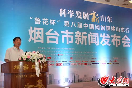 烟台市副市长于松柏出席烟台市新闻发布会并致辞。(马鑫 摄)
