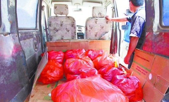 青岛质监局李沧分局稽查人员赶到后查扣了这辆送货车。“你送货有没有带检疫证明?”面对询问,这名男子表示货都是他加工的,没有检疫证明。执法人员表示,按照要求每次送货都应该携带检疫证明,这样送货是绝对不允许的,根本无法保证产品质量是合格的。随后李沧区食安办的工作人员也赶到了现场。