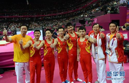 北京时间7月31日,伦敦奥运会体操项目比赛在英国伦敦北格林威治体育馆展开体操第三个比赛日的较量。在体操男子团体决赛中,中国队发挥几近完美,在所有六个项目的比赛中没有出现一次失误,以总分275.997分夺得冠军,在成功卫冕的同时,为中国军团拿下了第九枚金牌。日本队申诉成功获得银牌,东道主英国队逆转获得铜牌。