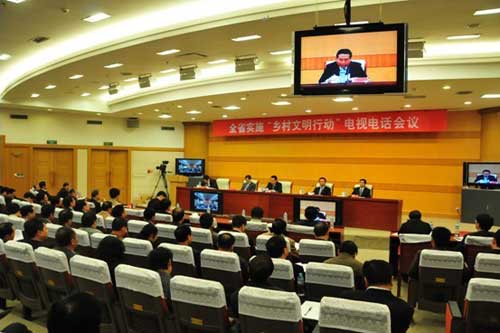 4月21日,山东省实施“乡村文明行动”电视电话会议