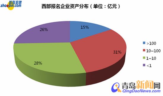 但值得一提的是,西部地区虽然报名企业很少,但报名的企业却表现出雄厚的财力。从报名企业的资产分布图上可明显看出,报名的西部企业资产规模更大。详见下图。