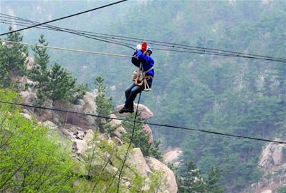 为保证崂山地区网络能够支撑最新的三网融合,硕士党员团队成员郭胜接到1个艰巨的任务:在1个月内解决崂山位置最偏僻8个村庄的光缆升级任务。这8个村庄分散在崂山山脉的崇山峻岭中,原来的老线路已经无法承载新业务需求,所有的线路需重新勘察设计、重新架设。郭胜和团队成员们兵分几路,每天翻山越岭,勘察地理信息,设计布线方案。当时正处夏季,山里太阳直射下温度高达45℃以上,加之山路陡峭,工程车无法进入。团队成员带领施工队的小伙子们用肩膀扛起光缆电缆,沿山路一步步推进。工程车随车携带的大桶水都被他们喝得干干净净,之后只能到山间喝泉水。期间,崂山北九水山区有几户居民住在半山腰,中间有一个水库相隔,线缆必须从两边的山体通过距离水面40多米的高空架设。团队员工通过现场分析,自己制造出一套 “滑车”设备,整个人悬在两山之间1公里长的钢索上,在40多米的高空来回挪动固定线缆。连山里村民看到悬在空中的 “飞人”,都惊出了一身的冷汗。20多天后,这一地区深山里的每一户人家都看上了信号稳定的有线电视。(记者 赵健鹏 通讯员 于海涛 摄影报道)