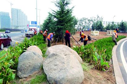 随后记者又来到瑞昌路与湖清路路口,街边小花园园区路径及花圃已初见雏形,园林工人们正在植树。据了解,此处原有违建15处,多用于餐饮、废品收购、洗车等经营,造成周边环境卫生脏乱差现象较为严重。今年年中,兴隆路街道办事处和城管执法局组织人员依法对该处违建进行了拆除。今年秋季开始植树增绿,共栽植黄山栾、银杏、雪松、玉兰、白蜡、樱花等乔灌木700余株,铺设修缮路径200余米,绿化面积4388平方米,通过彩叶树种和观花植物的组合,将达到四季有绿、三季有花的景观效果,给市民提供一个休闲健身场所。此外,瑞昌路立交桥下一侧的绿化工作也全面展开。