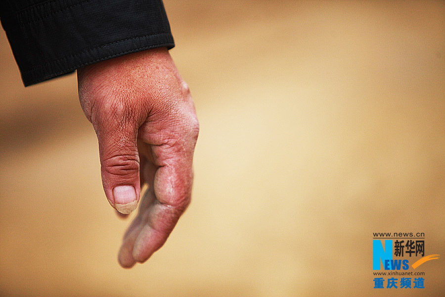 康厚明手掌比常人略厚实一些,这是以前做工留下的印记(高歆 摄)