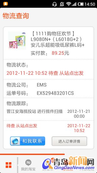 但是,随后的发货速度令人感到很失望。“后来,过了一个礼拜,我查询快递,对方称11月22日待查从站点出发。这一说法把我也说蒙了,就打电话给EMS询问情况,对方回复称会再查询,让我等候,最后打了四次电话都没得到一次合理的反馈,这样的情况一直等到了现在。”