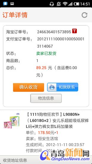 姜女士反映道:“双十一时候,为了给孩子抢到实惠的纸尿裤,半夜十二点起来买了恒安的货,很辛苦才完成。当时卖家发货已经很晚了,11月21日发货后,我也没太在乎,毕竟双十一大家都买的多发的多,耽误些时间也可以理解。”