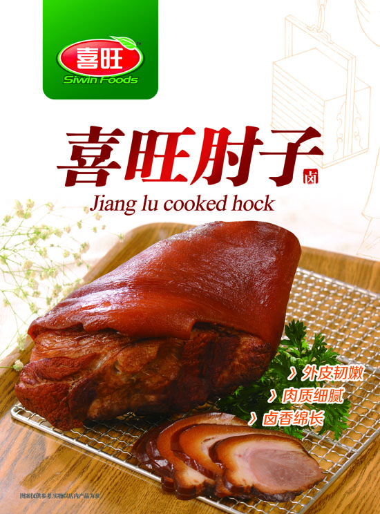 带着问题,我们也采访了喜旺集团研发部门的负责人,负责人透露,喜旺肘子是喜旺集团历经一年半的时间倾力打造的一款新型酱卤肉制品,秉承秘制传统配方和工艺,在汤汁内添加八角茴香、枸杞子、桂皮、陈皮、白芷等20多种既可食用也可药用的中草药。肘子原料经腌渍入味、酱制、蒸煮和熟焖等12道工序细火慢焖而成。