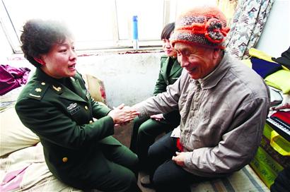 “感动是一种力量,是触动心灵向善的力量。”青岛二疗政委李祥斌介绍,在刘海青的影响下,她所在的连队先后有160多名战士照顾这对盲人夫妇。王思聪老人每年都认下不少“兵儿女”。而已结婚生子的刘海青又把爱人和正在读初中的儿子 “收编”到照顾盲人夫妇的队伍里。