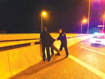 3月18日晚上10时许,湖岛派出所接到市民报警:在环湾路瑞昌路立交桥上,他看到一名男子在上面来回走动,还时不时看看桥下面,并且该男子完全不顾马路上来回穿梭的车辆。