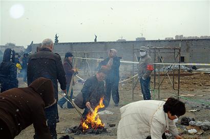 这个上午,大家从早上七点一直忙到下午两点才吃上了午饭。一上午,这些身穿深黑色长棉服、脚踏黑色皮鞋、一身肃穆的年轻女孩子在火化间、骨灰堂和业务大厅间穿梭奔走着,神色凝重、步履匆匆。雨,无声地下着,夹杂着丧属此起彼伏的哭泣声,沉闷压抑的气息在空气中飘荡蔓延。