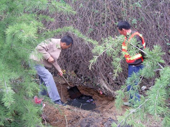 第二站我们步行绕到了高速公路沿线边沟的外侧,这里正在进行隔离栅更换施工。对立柱的位置、深度,隔离栅的埋深、地沟网的封闭等等,曹利清一一进行了强调,并向记者解释说,“这活当天必须结束,否则会留下安全隐患,一会还要回来重点监督。”