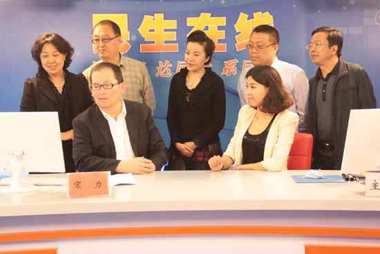 青岛市供销合作社联合社理事会主任宋力(一排左一)与网民在线交流 (摄影 周琦)