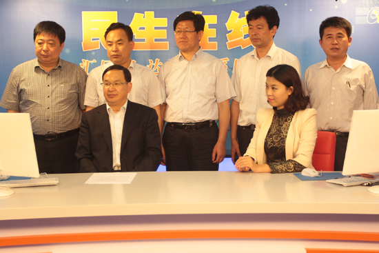 莱西市政府市长纪家栋(一排左一)与网民交流 (周琦)
