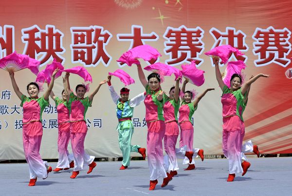 来自胶州市12个镇、办的30支秧歌代表队参加了决赛。据介绍,此次秧歌赛从5月26开始,报名异常火热,来自该市农村、社区、机关和学校的的支代表队经过胶东、中云、三里河等四个分赛场的激烈竞争,80支代表队最终有30支进入决赛,演员年龄最大的76岁,最小的仅仅6岁。