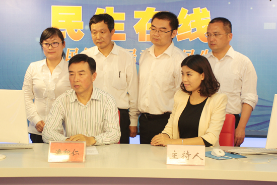 青岛市档案局(馆)党组书记、局(馆)长潘积仁(一排左一)与网民在线交流 (周琦 摄)