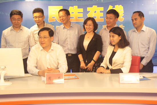 青岛市财政局局长周安(一排左一)与网民交流 (周琦 摄)