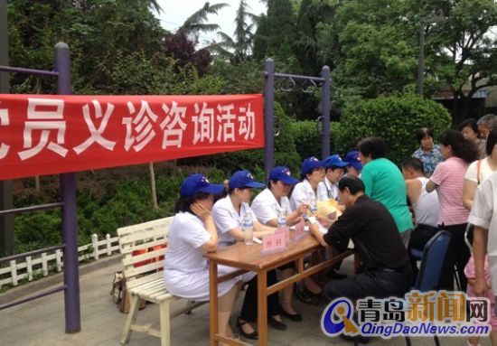上午10点,李沧区君峰路公园小广场上人来人往、络绎不绝,李村街道党工委联合驻街单位青岛第八人民医院的党员义工,为辖区居民提供免费查体和上门义诊服务,用实际行动为即将到来的党的生日献礼。