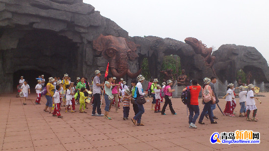 记者在“时空隧道”中,用短短60米的距离穿越“掠过宇宙”、“时空隧道”“无限延伸”“火山溶洞”“漩涡空间”五个不同的场景,从现在穿越回到5000年前,来到了一个史前时代重现的时空。在景区文化广场,盘古开天辟地、后羿射日、女娲补天等雕塑群参差错落,或站或坐,各具神韵,既有动感又富艺术张力,更是将场景拉回到史前时代。景区处处渗透着史前文化元素,闪耀着大汶口文化光彩。