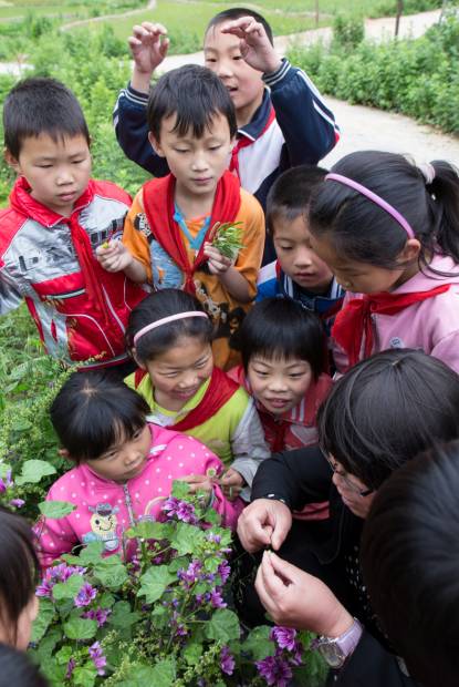 谢萍的教学方法别出心裁。一堂三年级的作文课,她把孩子们从教室带到田野点缀两旁的山路上,让孩子们观察眼前的景物,然后让孩子说说看到了什么。“我看到了一条弯弯曲曲的小河”,“我看到了田野里的花朵”,这时响起一个小男孩的声音,“我看到了像五线谱一样架起的电线。”听到这句回答的谢萍大笑,“电线上面有麻雀吗?没有麻雀,五线谱就没有音符呀!”孩子们在欢声笑语中掌握了知识。