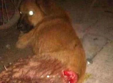徐州动物保护志愿者闻讯赶到现场企图救治,狗狗已倒在血泊之中。吴厚猛医生和刘辉医生在现场抢救过程中亲眼目睹流浪狗强烈的求生欲望。由于伤势过于严重,狗狗在输液没多久后就睁着双眼离开了这个世界。