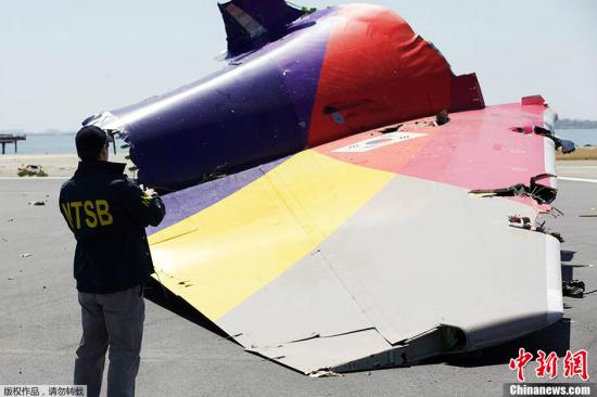 当地时间7月7日下午,美国旧金山国际机场,美国国家运输安全委员会NTSB调查人员着手调查韩亚航空214航班波音777失事班机。6日上午,214航班着陆时失事,造成两名中国公民遇难,182人受伤。中新社发 陈钢 摄