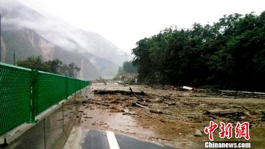 都汶高速汶川县绵虒镇新店泥石流现场。 钟欣 摄