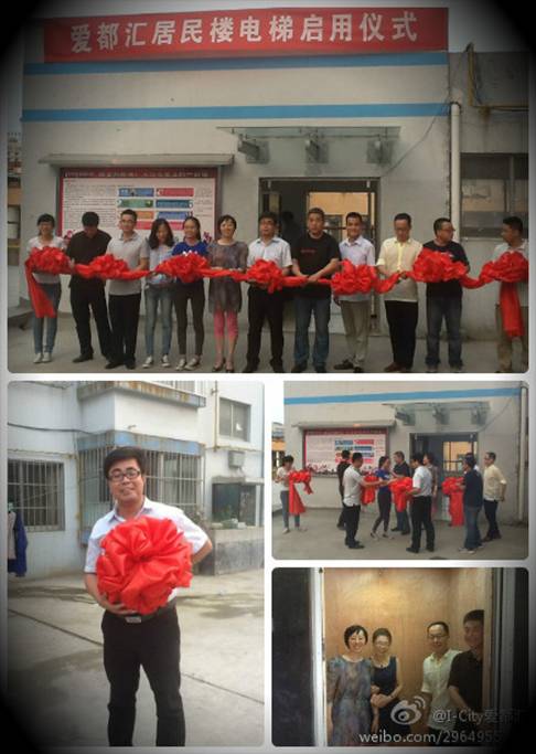 经过3个月的施工,便民电梯于7月5号终于正式投入使用。在现场可以看到,电梯井设在商城里面,电梯可以直达4楼平台。乳黄色的外墙和商城颜色一致,乍一看,看不出其是后期另外安装上去的。除了每层北侧位置的墙体需要开洞外,其它房子结构基本没动。