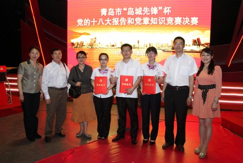 6月14日下午,由青岛市委组织部主办的青岛市“岛城先锋”杯党的十八大报告和党章知识竞赛决赛在青岛市广播电视台800米演播大厅隆重举行。本次比赛设一等奖2个、二等奖3个、三等奖4个,由机械总公司组织的华通集团代表队进入了决赛。华通集团党委副书记刘甘霖、党群工作部部长刘文先、机械总公司党委副书记孙明铭及所属企业部分党组织书记和员工代表出席并观看了比赛。