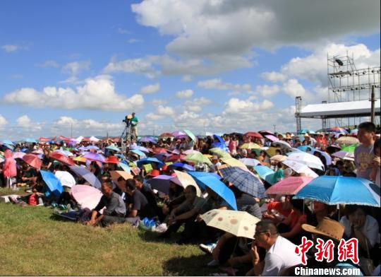 图为沽源湿地音乐节上的观众在台下撑着伞观看 王雅岚 摄