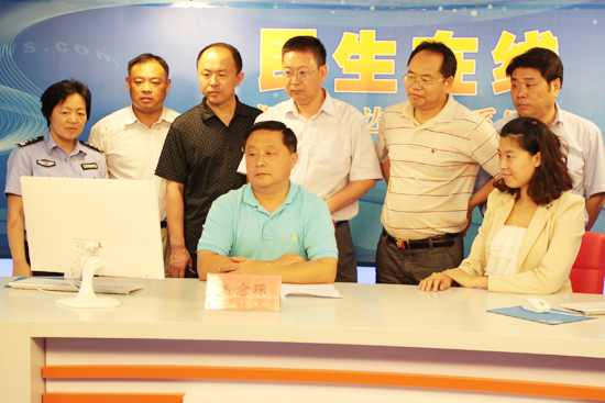 青岛市林业局党委委员、副局长高愈琛(一排左一)与网民交流 (周琦 摄)