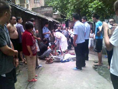 居民们说,凶手在小区内连砍两人后,冲向路边的一名抱着孩子的老人,“老人抱着孩子,害怕他砍着孩子,背上被砍了两刀”。