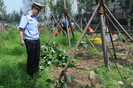 青岛新闻网7月24日讯 为配合海尔路两侧绿化工程的顺利施工,今天上午9时,崂山区市政公用局、崂山区城管执法局出动执法人员20名,工人20名,历时8个小时,清理掉位于崂山区恩马文景园小区西侧全市最大的私家菜园。