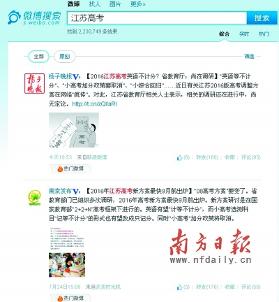 近两日,“江苏高考”成了微博搜索的热门关键词,网友七嘴八舌讨论这一可能影响深远的消息。大致的舆论走向是,学生欢喜,家长、老师担忧。