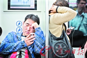 ←在地铁上,大家低头玩手机,已成为常态。