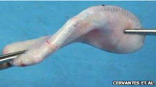 研究小组负责人托马斯•塞万提斯博士说:“我们在老鼠身上培育出了首个与真人耳朵大小一样的人工耳。”他说,这项研究向利用组织工程学培育人类耳朵的临床实验向前迈出一大步。塞万提斯预计,人类临床实验有可能在大约5年后实现。