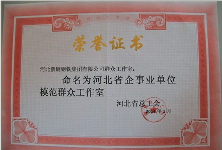 3月22日上午,廊坊市总工会副主席田会兰、廊坊市总工会副处级调研员李宝秋在文安县总工会常务副主席刘永乐等陪同下专程为新钢集团颁发“河北省企事业单位模范群众工作室”荣誉证书。新钢集团党委副书记、工会主席王国常、工会副主席徐国岘等参加了授书仪式。