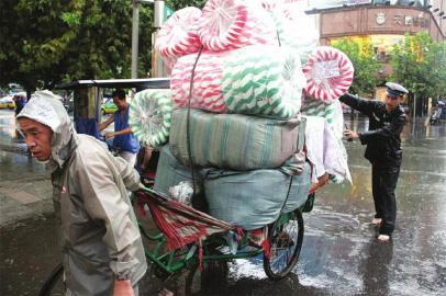 赤脚执勤的交警不仅感动了“的姐”,连走路上班的曾先生也表示,这些交警很敬业。他表示,如果没有交警冒雨执勤,很难想象拥堵的城区交通会变成什么样。