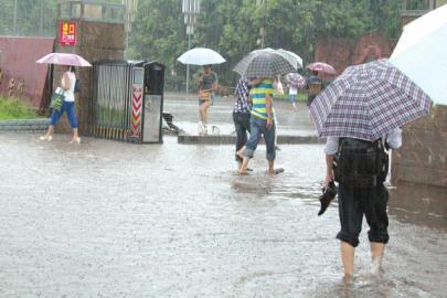 “我们平常都来这里吃早餐,今早上找遍了都没有找到包子铺。”昨日上午,在宜宾学院门口,一些出来吃早餐的学生没能找到平时在这里卖包子的小摊。由于降雨,宜宾学院门前的道路上积水严重,最深的地方能够淹过小腿。在一处下水道的地方,水哗哗流入下水道口,就像是一条“小溪”。