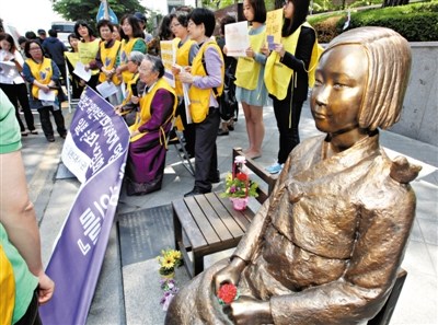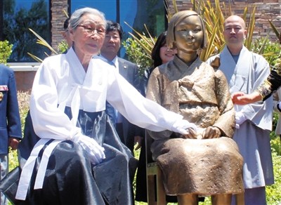 以揭发二战日军罪行,日政府不满;日本驻韩大使馆前也有一尊慰安妇铜像