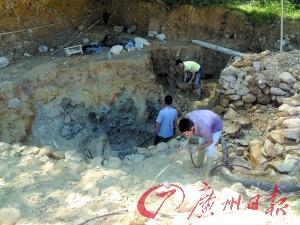 记者跟随一行人来到田里,发现有一块大约两亩的地被围了起来,旁边还装上了摄像头。陈永喜告诉记者,这一块地是最后的“保留地”,政府部门禁止私人挖掘。而他的田地就在距离十几米处,已经被深挖了3~4米,有5~6个人正顶着火辣的太阳忙碌着,有的用锄头挖动着泥土,有的把挖到的石头和淤泥往坑上倒,有的拿着长长的水管冲洗着石头。“有时候忙上半个月也没什么收获。”陈先生说,如果找到田黄了,就要几个股东们坐下来一起商量定价,卖也是要大家同意才行。