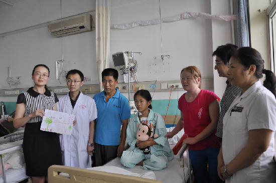 青岛新闻网讯 7月26日,胶州市卫生局副局长许晶等一行8人前往青岛阜外心血管病医院看望了先天性心脏病患儿敏敏,青岛阜外心血管病医院党委书记、院长杨瑛陪同看望。