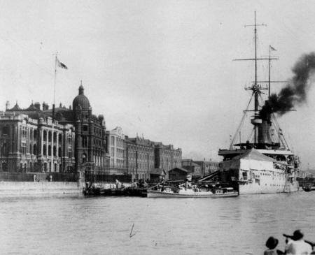 ▲1937年,停靠在上海的“出云”号巡洋舰。