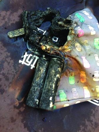 电池外壳几乎烧光,留下两根电芯。再一看,沙发被熏黑了,地板留下一块电池形状的深深烙印,服装店内挂着的衣服上星星点点散落了不少黑灰,王小姐既无奈又尴尬,服装店内焦糊味迟迟散不去,店主一时是有苦说不出。