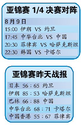 赛后,组委会及时印发了9日开始的淘汰赛赛程,中国队将于9日17时45分对阵中华台北队。