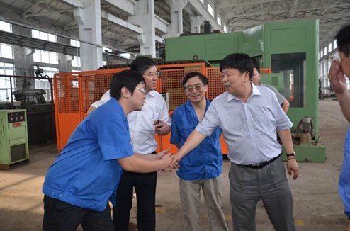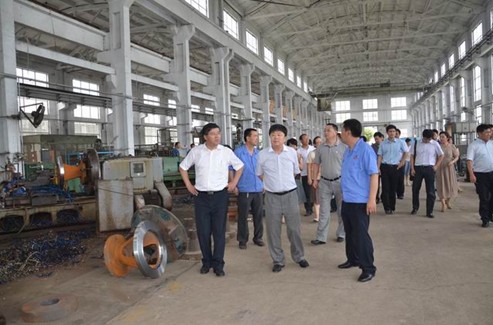 王磊董事长、范建军副总经理和马小维副总经理率队首先参观了海纳重工集团部分车间。在参观过程中,他们认真考察了一线职工的工作环境,听取了相关人员对生产情况的介绍,了解新厂房建设进度和下一步莱西工业园的厂区规划。