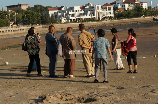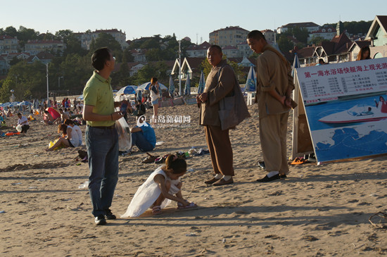 在半个小时的时间里,三人向沙滩上十余名市民及游客伸手乞讨。但无一例外,全部被拒绝。“带着孩子来海边,看到假和尚真扫兴!”被假和尚“骚扰”过的市民愤怒地对记者说。